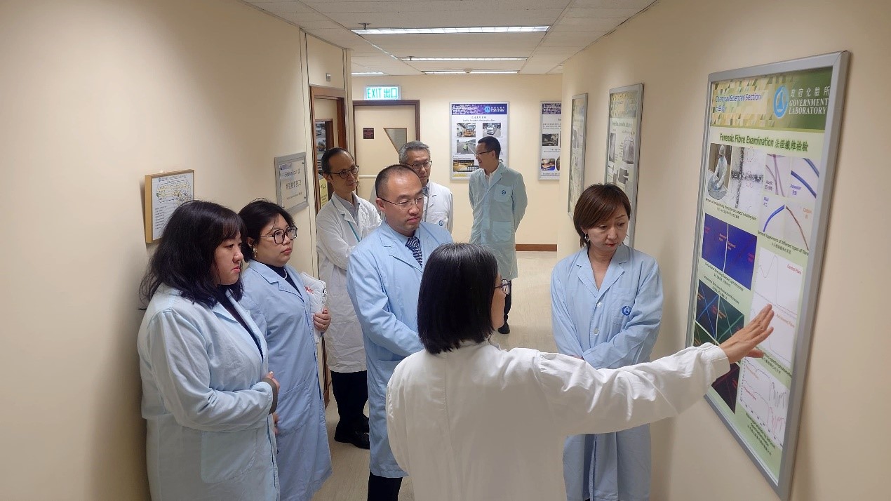 On 16 January 2026, a five-member professional delegation led by Ms. Wang Yuan-feng, Head of Research Institute of Evidence Law and Forensic Science, the Chinese University of Political Science and Law, visited the Government Laboratory and held talks with colleagues from the Forensic Science Division. The two sides exchanged views on forensic testing in the Mainland and Hong Kong.