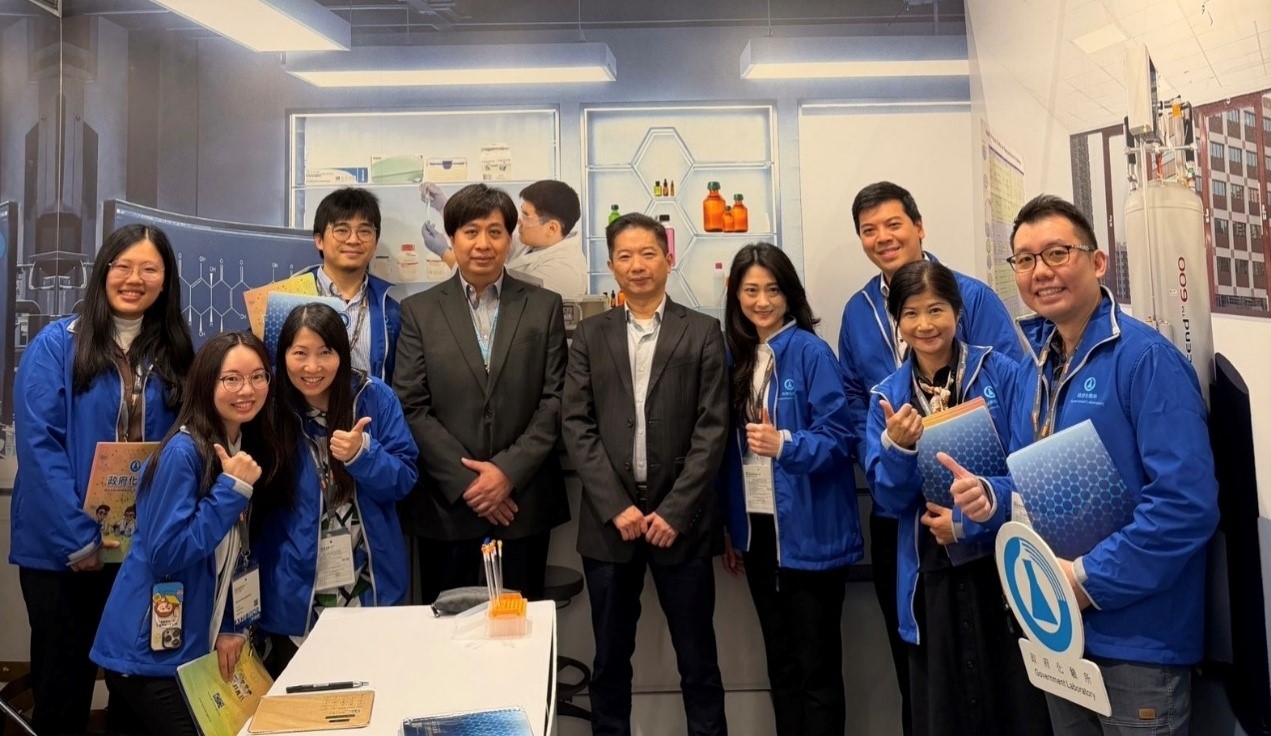 The Assistant Government Chemist (Analytical and Advisory Services Division), Dr. Cheung Tsz-chun (fifth left) and the Assistant Government Chemist (Forensic Science Division), Dr. CHENG Yuk-ki (sixth left) posing a group photo with GL representatives for the event.