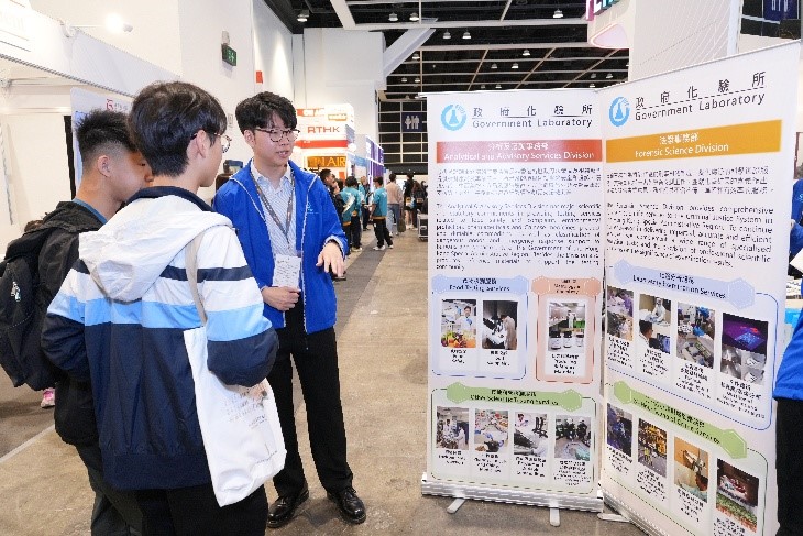 The Government Laboratory (GL) has participated in the Government Career Fairs from mid-September to early October, engaging with students across local universities in Hong Kong, including the University of Hong Kong, the Hong Kong University of Science and Technology, the Hong Kong Polytechnic University and the Chinese University of Hong Kong.