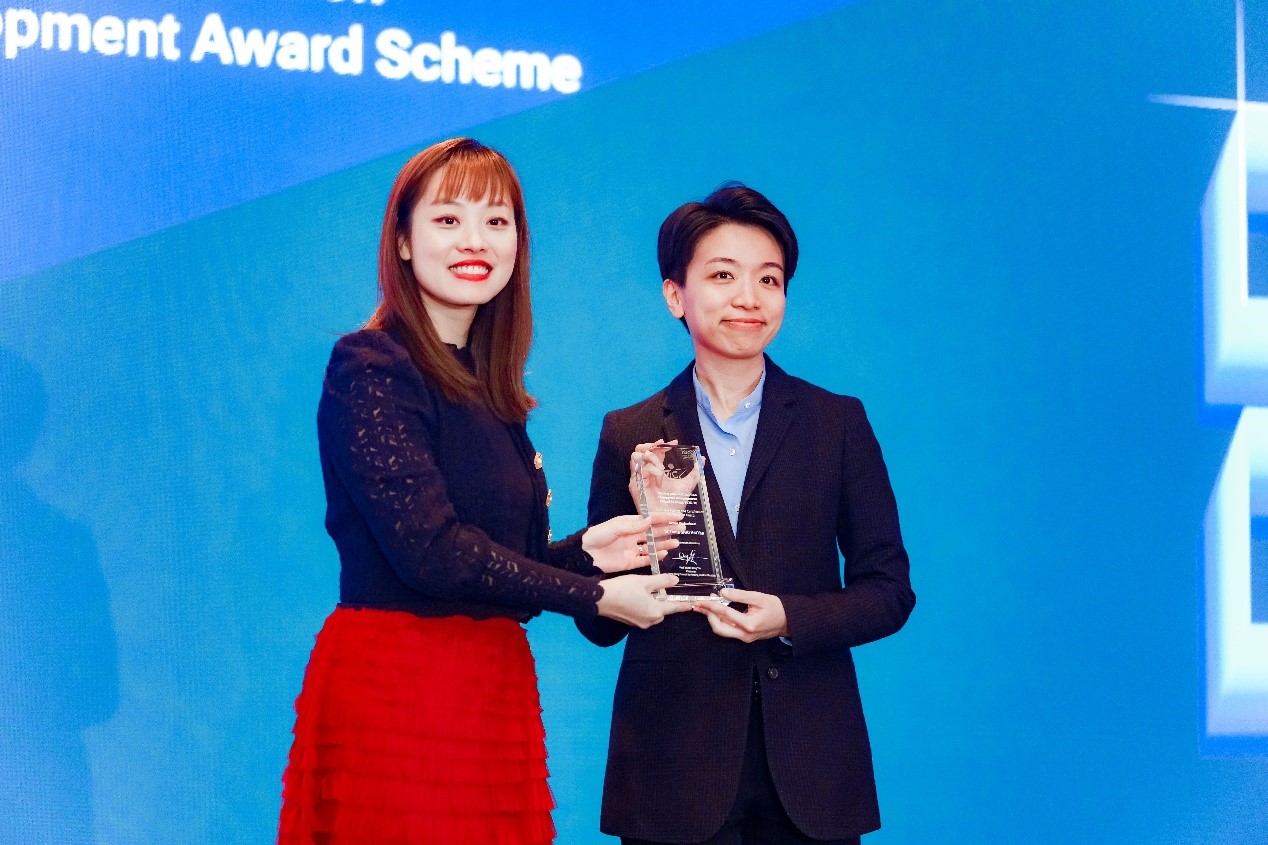 Dr. SHIU Hoi-yan (right) receiving the Excellent Testing and Certification Professional Award – Senior Professional Award on stage.